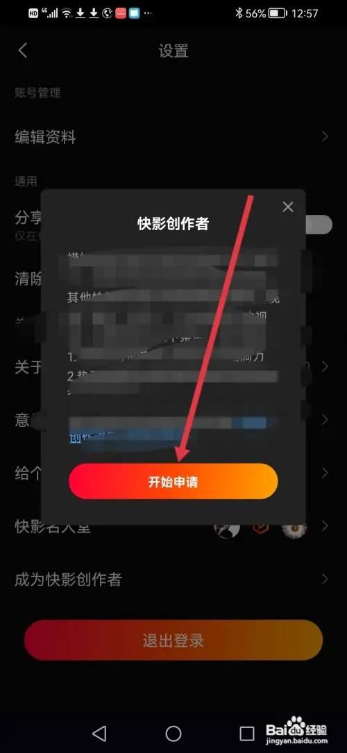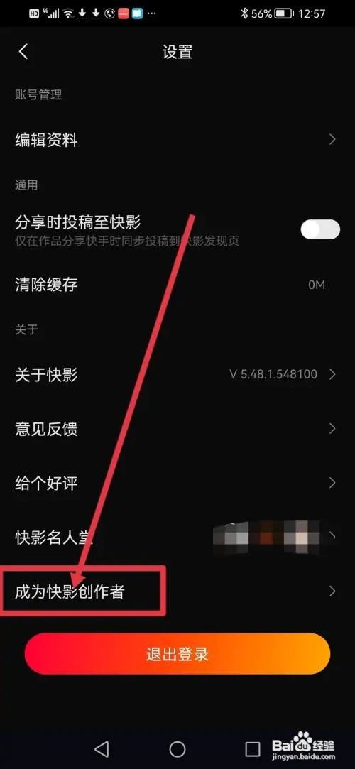 进入设置,点击【当作为快影创作者】。