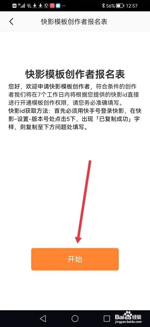 来到快影模版创作者接报名表页面,下来按指引操作即可。