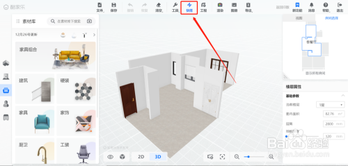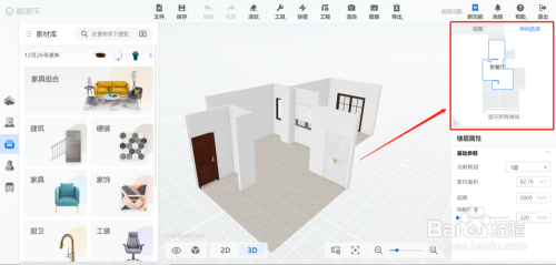 2D视图下(平面/顶面),户型、模子一目明了,地面模子在平面视角下摆放,其巨细、位置的调解越发精确。