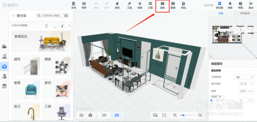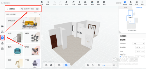 点击页面左侧“大众素材库”,可以在左边分类里选择家具模子也可以直接在搜刮框中输入要害词搜刮家具模子,然后拖入画布中摆放。