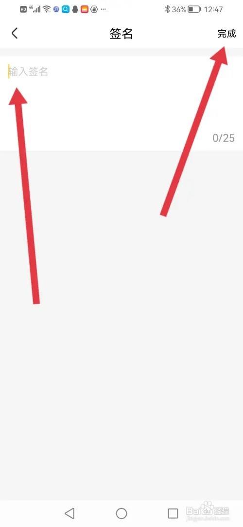 进入设置署名界面,然后输入署名内容,点击【完当作】即可。