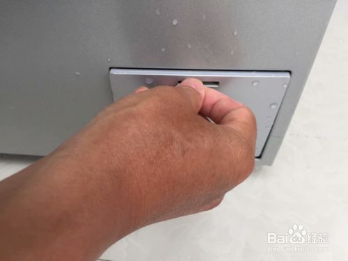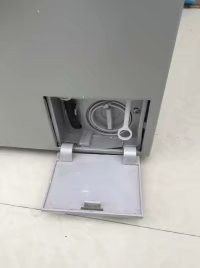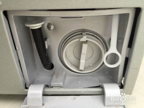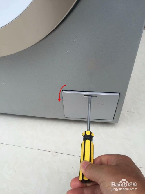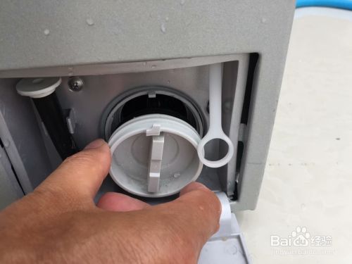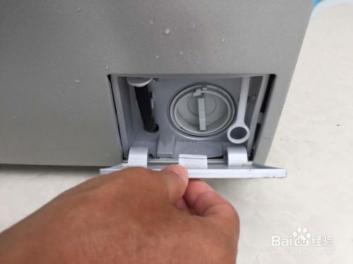 拔下洗衣机电源插头,找到洗衣机前方下部的过滤器盖板。