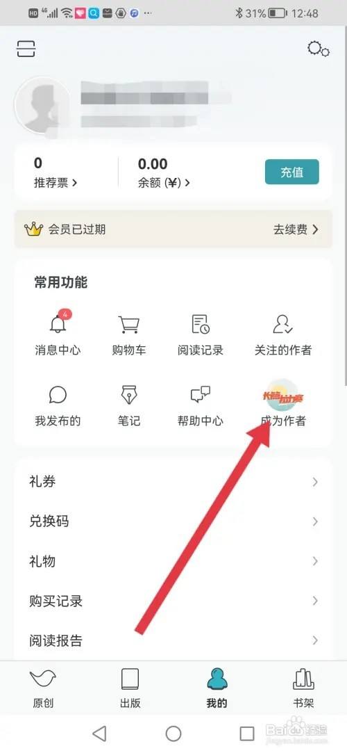 来到个人中间,点击【当作为作者】。