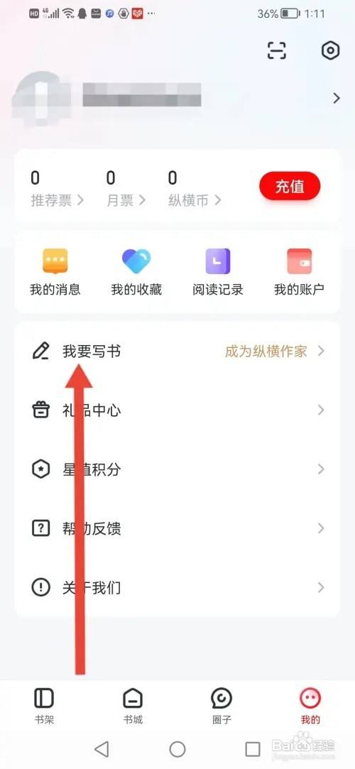 来到个人中间,点击【我要写书】。
