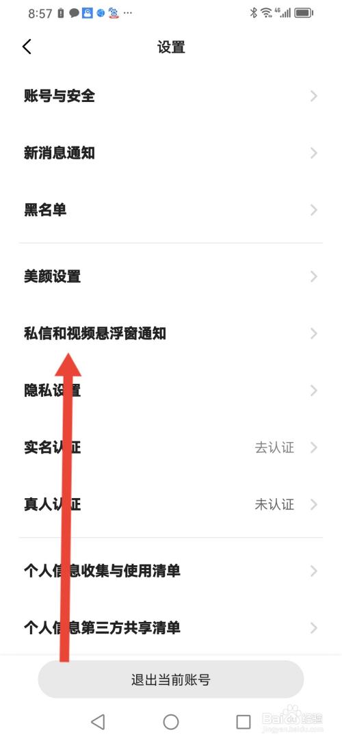 进入设置,点击【私信和视频悬浮窗通知】。