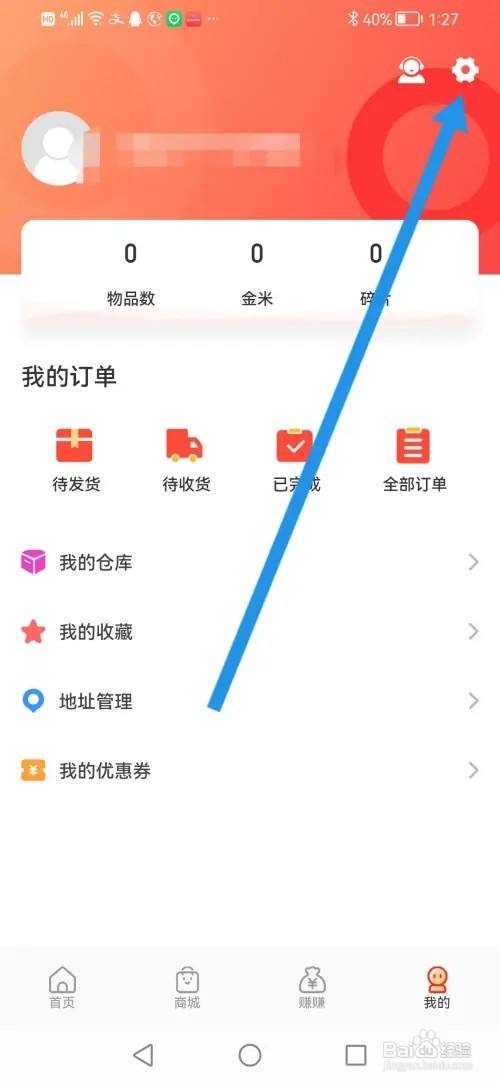 来到个人中间,点诸蚊击右上角的设置图标。
