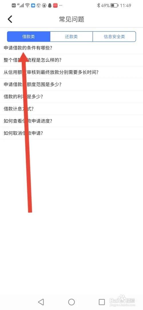 来到常见问题界面,点击【申请告贷的前提有哪些】。