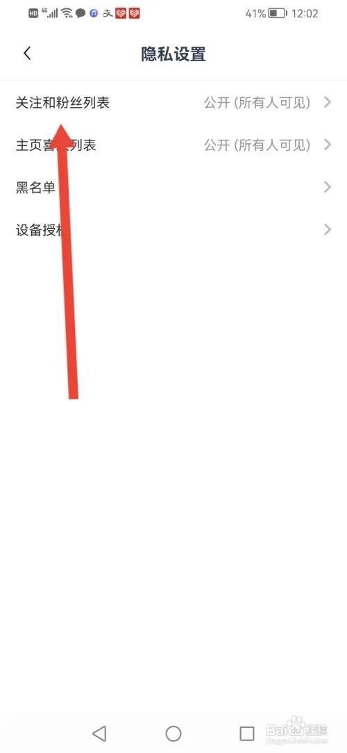 进入隐私设置,点击【存眷和粉丝列表】。