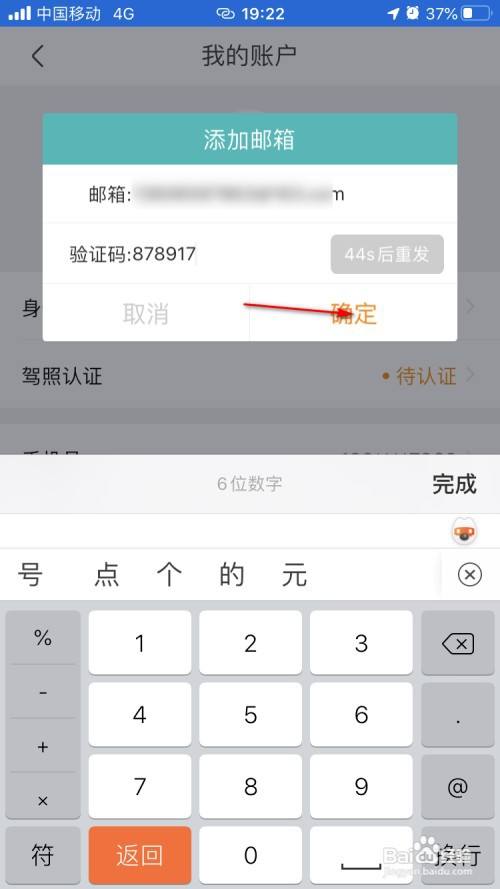 然后,输入邮箱地址,获取验证码,点击【确定】按钮。