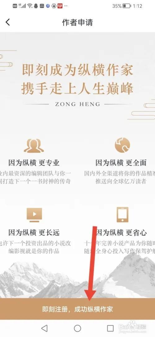 进入作者申请界面,点击【当即注册当作为纵横作家】。