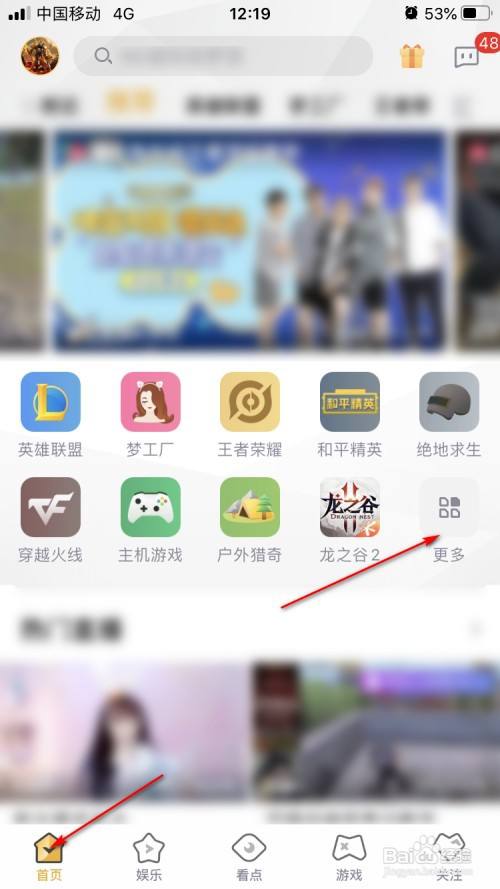 然后,我们点击下【首页】选项,再点击【更多】按钮。