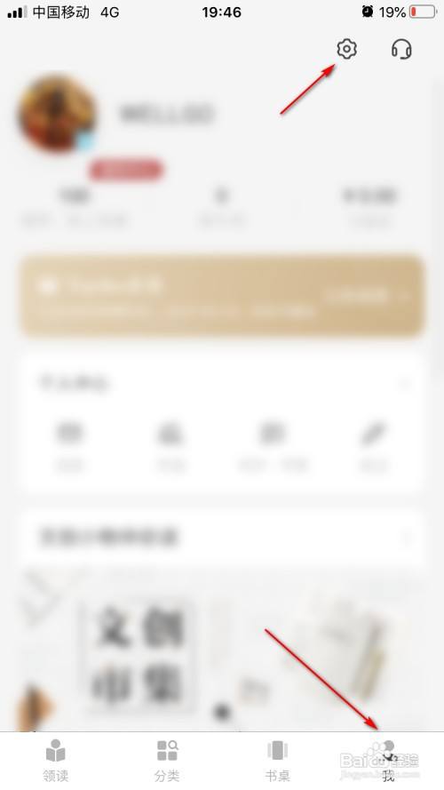 然后,我们进入【我】界面,点击上方的【设置】图标。