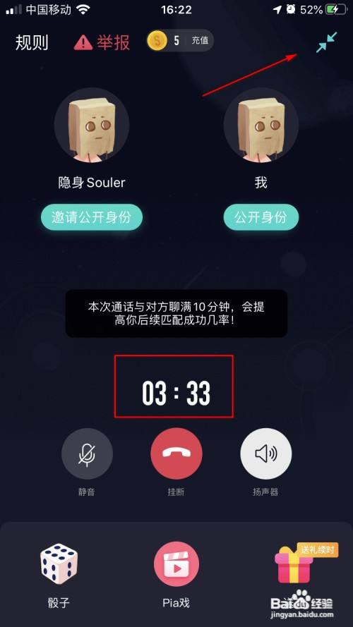 然后,我们等候匹配,匹配到了就可以起头语音谈天了。
