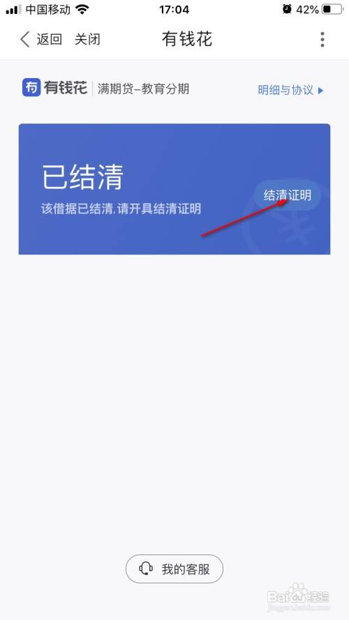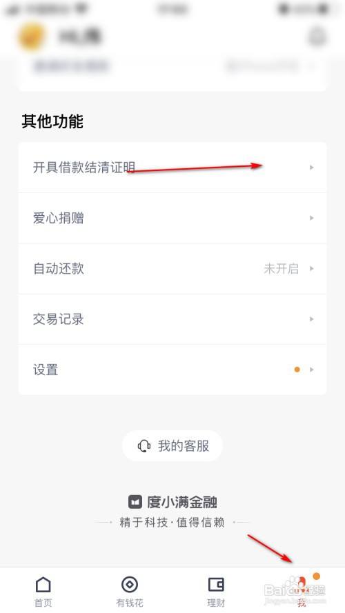 然后,点击下【我】选项,再单击【开具告贷结清证实】选项栏。