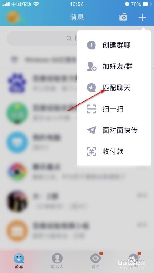 打开手机QQ,进入首页,点击右上角的【+】号图标按钮。