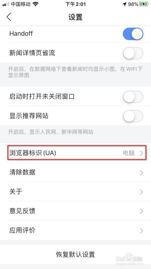 点击下【浏览器标识UA】这个选项栏。