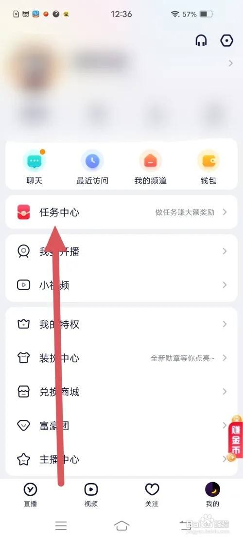 来到个人主页,点击【使命中间】。