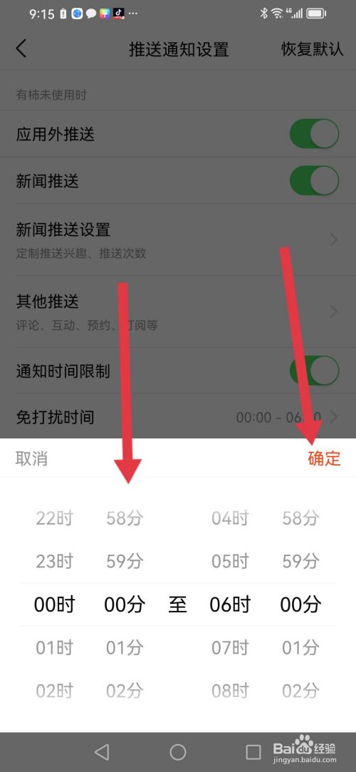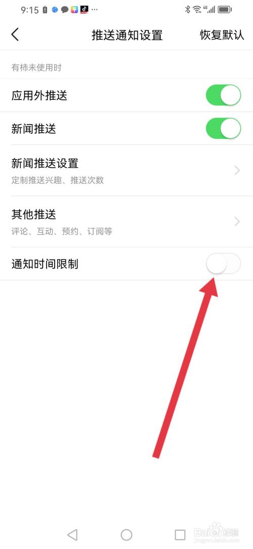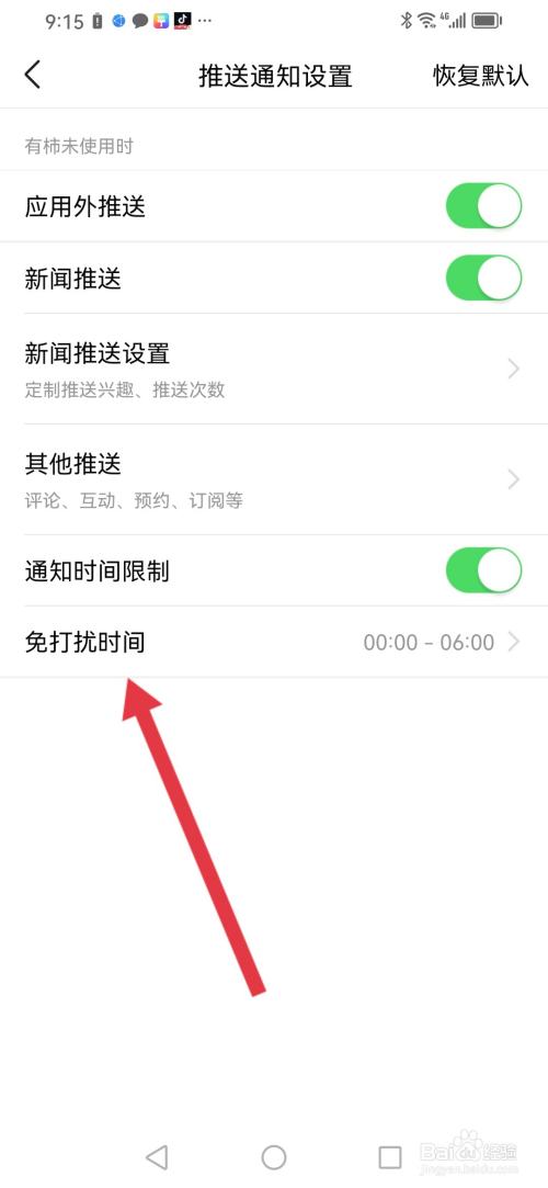 进入推送通知设置,然后把【通知时间限定】的按钮开启。