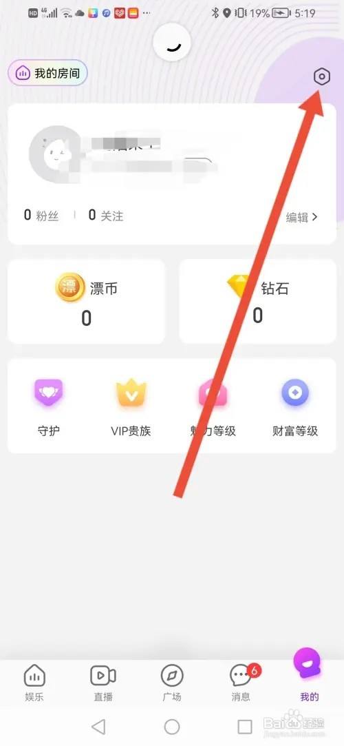 来到个人主页,点击右上角的设置图标。