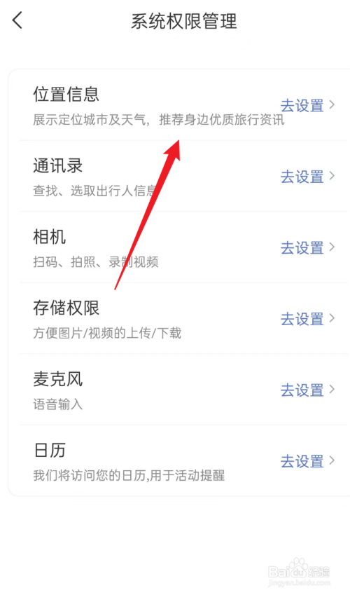 进入隐私设置菜单栏,点击体系权限办理选项。