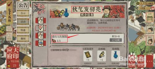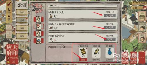 累计运动积分到达50,100,150即可得到无穷加快票*5,金画轴*1与琉璃瓶*1。