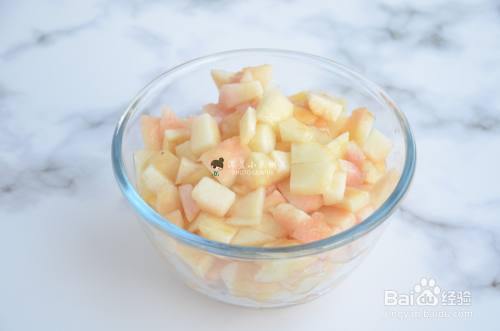 桃子洗净去皮,切当作小块,必然不要切太大块;
