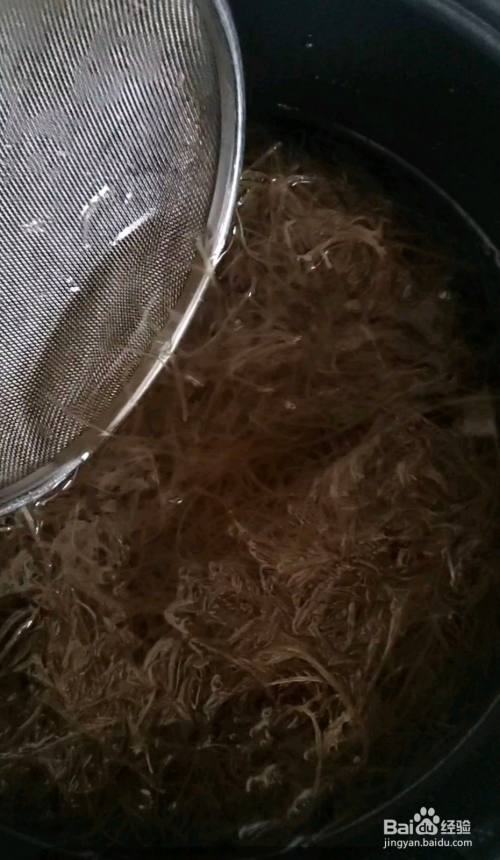 称50克石花菜泡水里洗濯,把杂质挑出来。 洗濯好后+醋+2000克水放电饭煲里选择粥汤功效。