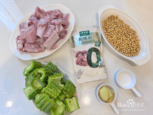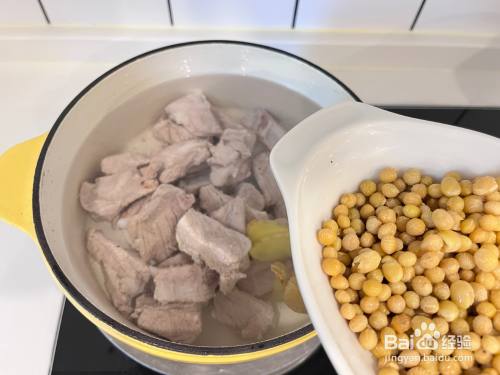 1、 提前筹办食材,全数洗净,提前半小时浸泡黄豆,姜切片。