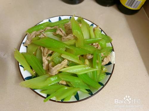 倒入西芹大火翻炒1分钟