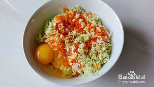 随意切点儿卷心菜胡萝卜碎进去富厚下颜色和口感