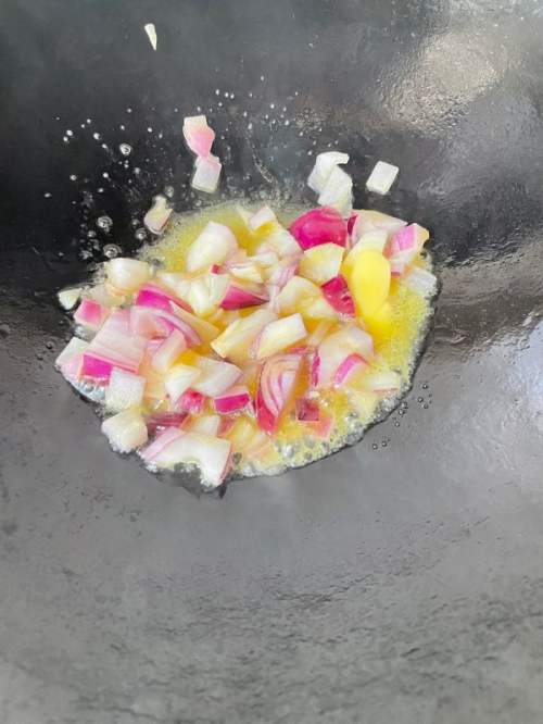 - 5锅烧热、加黄油或油,插手番茄丁,炒出汁水