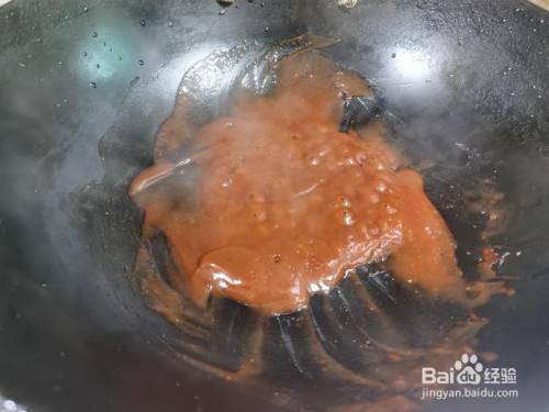 锅里插手番茄酱、韩式辣酱、水、白糖熬至浓稠