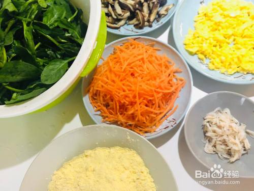 菠菜绰水,挤干水分切小段,胡萝卜喷鼻菇绰水挤干。不消挤的太干,便于后面团的时辰不容易散