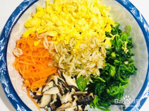 筹办配菜,洗洁净,胡萝卜喷鼻菇切丝,鸡蛋炒熟