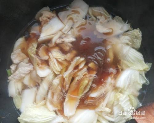白菜炒软,然后倒入适量开水(最好用开水)水没过菜即可,不消太多。