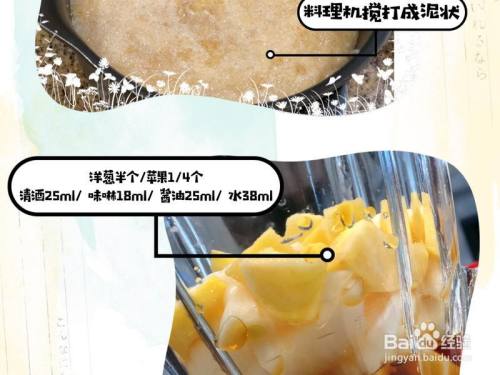 所需质料: 洋葱半个,苹果1/4个,蒜蓉1茶匙,酱油25ml,清酒25ml,味啉18ml,水38ml。 (原文用量较多,我是原文1/4的量)