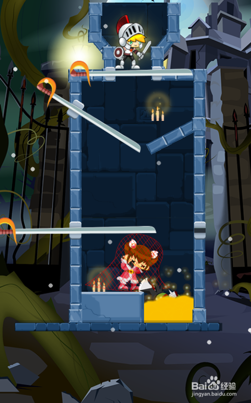 这个关卡的使命是解救小公本家儿,怪物兵在小兵下侧,环境如图。