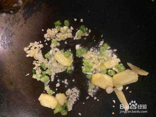 姜切片,蒜头切末,葱2根切末,葱白和葱绿分隔,干辣椒切当作小粒
