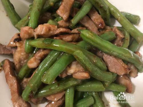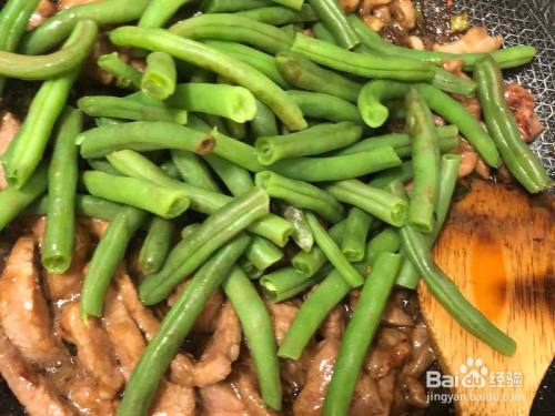然后倒入之前焯好的豆角,继续翻炒,两三分钟就可以了 「炒好之后可以尝一下味道,照理来说之前腌肉的咸味已经够了,以是不消再加盐了,可是要是感觉不敷的话,可以再加一点」