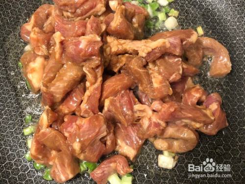 把腌好的肉倒入锅里,翻炒