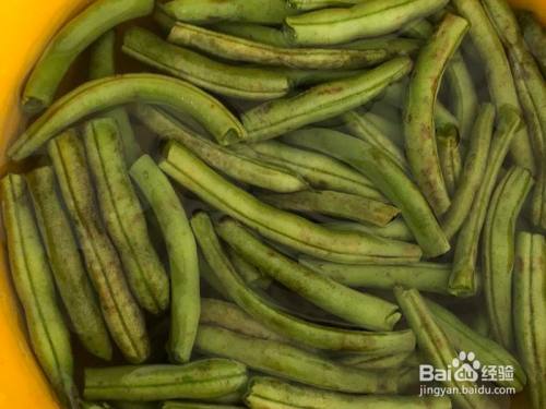 洗洁净,然后摘一下豆角,同时烧一锅水等下炒豆角用 「我的豆角放久了,以是欠好看,可是不影响吃」