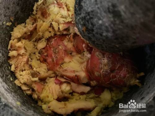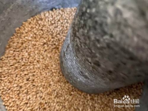 熟白芝麻舂碎,舂的时辰超喷鼻(原本想用碎蒜器,发明欠好操作,改用石舂就很容易操作)