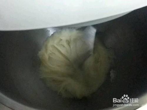 放厨师机搅打至顺滑能拉长。(量太少需要把缸举高点搅拌,拍摄时只能罢休)