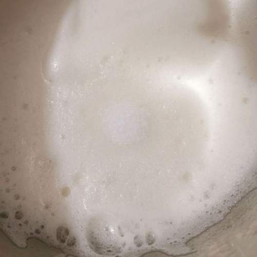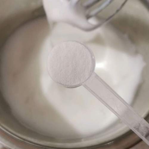 - 5用电动打蛋器打至湿性发泡,分次插手魔芋粉