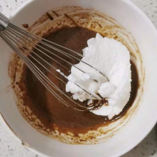 - 7三分之一卵白霜插手咖啡蛋黄糊中拌匀