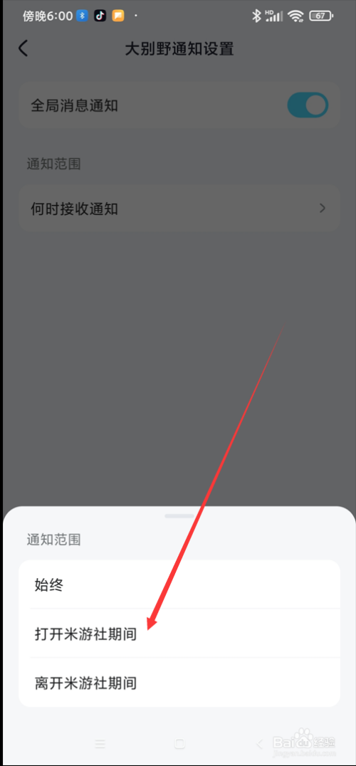 工具/原料小米9Android11米游社2.59.1方法/步骤1打开米游社app,点击主页右下角的“我的”;2点击我的右上角的设置符号;3点击设置中的“新动静通知”设置;4点击新动静通知设置中的“大别野通知设置”;5点击大别野通知设置中的“何时吸收通知”;6鄙人方弹出的小窗口中选择“打开米游社时期”吸收通知,这样在封闭米游社时辰,就不会吸收到大别野通知动静了。END