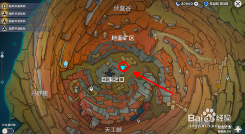 首先,传送到巨渊之口的传送点,标的目的南来到天工峡下方的高点位置(又要爬高山)。