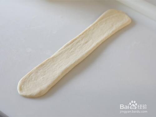 翻面,别离自左边和右边标的目的中心1/3处折叠, 用擀面杖稍稍擀长