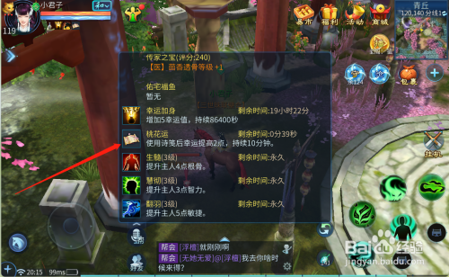 工具/原料苹果13IOS15.5倩女幽魂12.1方法/步骤1登录倩女幽魂手游,整点或半点的时辰,到青丘找到“NPC桃花仙”,点击对话求签算命;2求签后包裹里会获得“机遇丹”,解锁今日幸运弄法后利用,即可得到“桃花诗笺”,点击利用即可;3“桃花诗笺”利用后,若之前已有过该诗笺则会得到脚色经验及幸运,若没有还会解锁一个新的诗笺;END