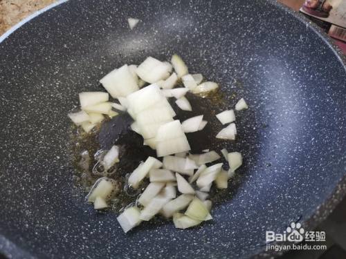 融化一小块儿黄油 倒入洋葱翻炒至洋葱略微发焦